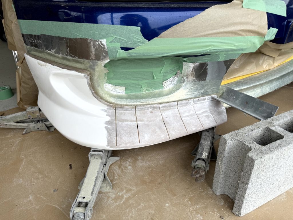 リアスポイラーも同様で、割れ多数あり・修理歴ありで修理方法も同じようなので、それらも再修理。