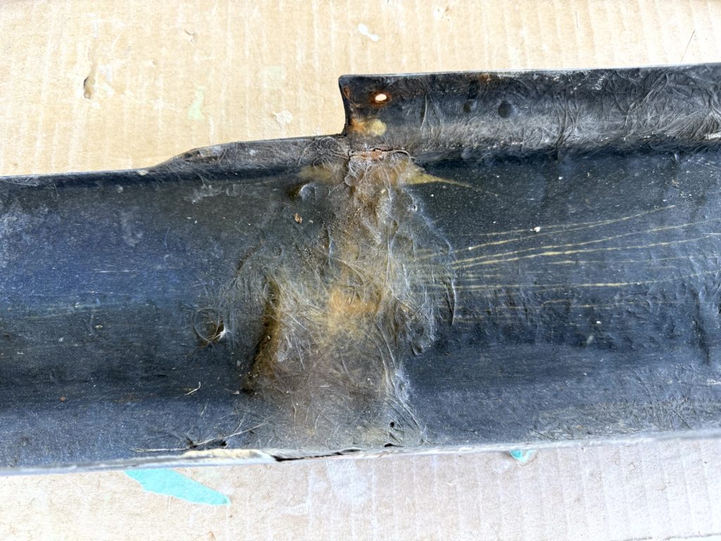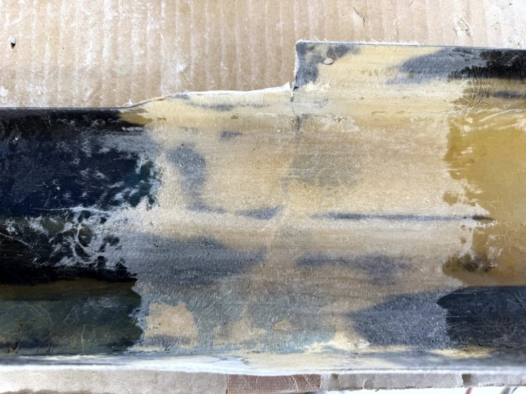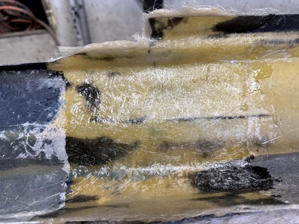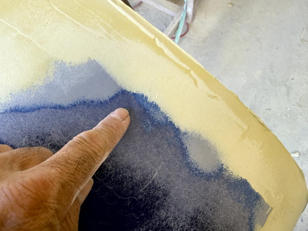 これはFRP修理あるあるで、このような修理をされている場合は表側のFRP張りをせずパテのみで修正していることがほとんどです。