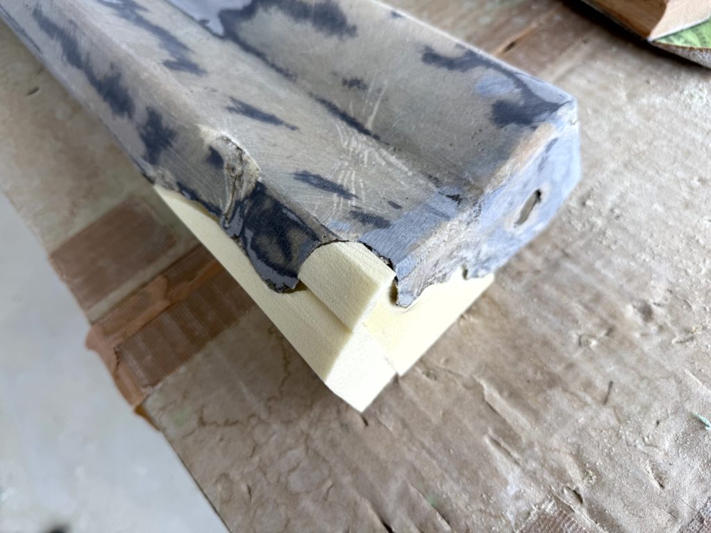 表側のカタチを決めたら、裏側からウレタンを除去してFRP張り。