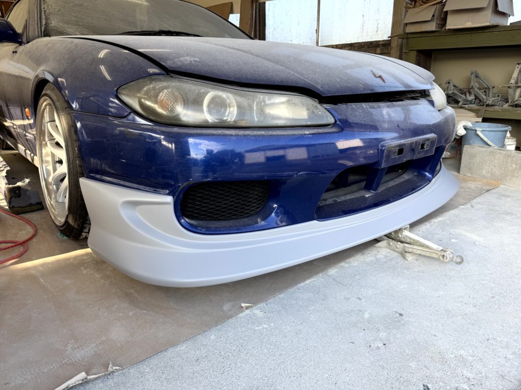 前回紹介したS15シルビアですが、製品開発と同時にエアロの修理と加工をご依頼いただいておりました。